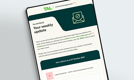 You can also get in touch with your Business Development Manager any time to share your thoughts and ask questions, or contact your TAL sales team or the Adviser Service Centre on 1300 286 937 (Monday to Friday 8am–7pm AEST).